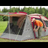 Кемпинговая палатка Ultra – это прямоугольная палатка на 4 быстросборных дугах и одной выносной дуге в тамбурной зоне. Время сборки без учёта шпилек и оттяжек составляет не более 5-ти минут. Внутренняя палатка уже пристегнута к тенту. После этого вам остается расшпилить зону спального помещения, собрать выносную дугу тамбура (у данной модели горизонтальная дуга изготовлена из фибергласа, а две боковые стойки - из стали) и зафиксировать ее к земле шпильками. Данная модель имеет внушительный тамбур, где вы можете совершенно спокойно поставить столик и стулья и в комфорте пережидать непогоду. В случае дождя вы можете приготовить в тамбуре себе еду, вскипятить чай. Тамбур палатки имеет два входа. Внутренняя палатка так же имеет два входа: вы можете попасть в нее непосредственно из тамбура палатки или с тыльной стороны палатки. Оба входа внутренней палатки (так же как и входы в тамбур) дублируются противомоскитной сеткой и ветро/водозащитными шторками.